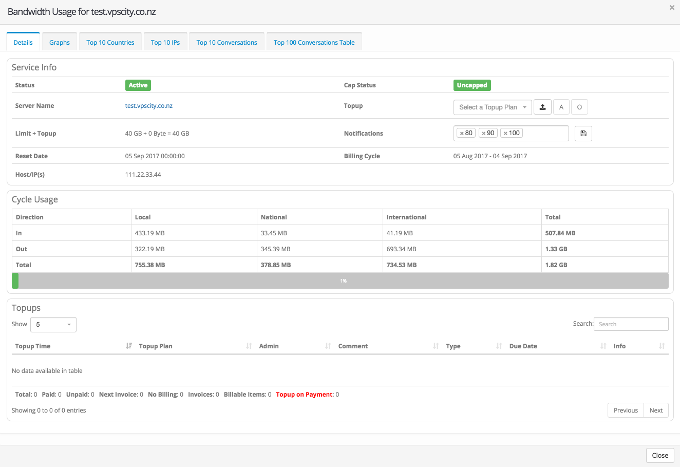 Our Bandwidth Usage monitor helps you understand how much data flows across your network. You can access statistical and graphical information to further investigate all bandwidth usage. You can top-up extra bandwidth if needed via Bandwidth Usage tool.
