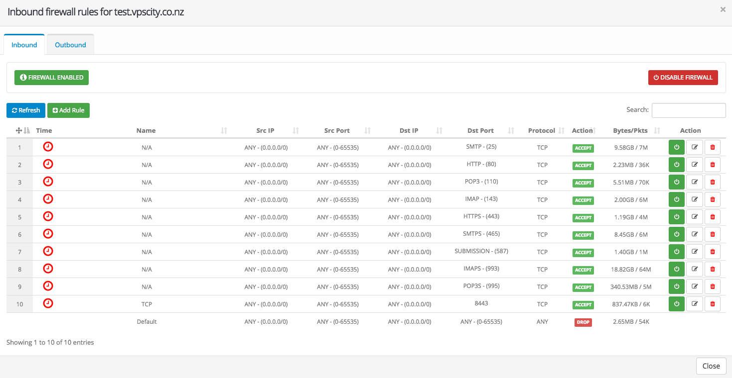 The VpsCity Advanced Firewall offers an intuitive and comprehensive cost-effective solution to keeping your server safe. You can add firewall rules for outbound and inbound connections as well, making the firewall bidirectional.